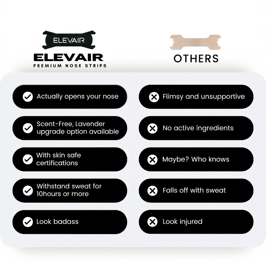 Find out why you should choose the Elevair Nasal Strips instead of other competitors/knockoffs.